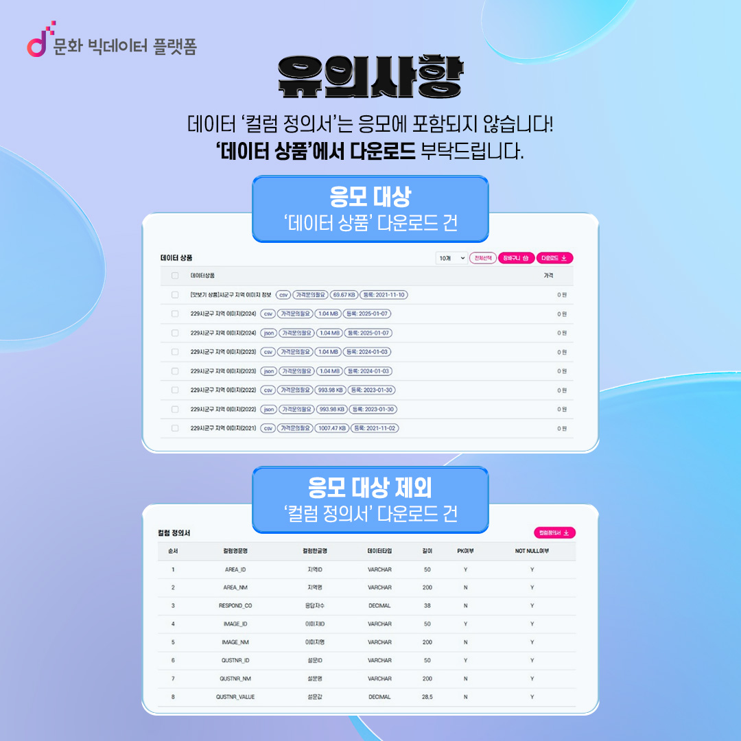 - 데이터 컬럼 정의서를 다운로드 받은 건은 응모에 포함되지 않습니다.