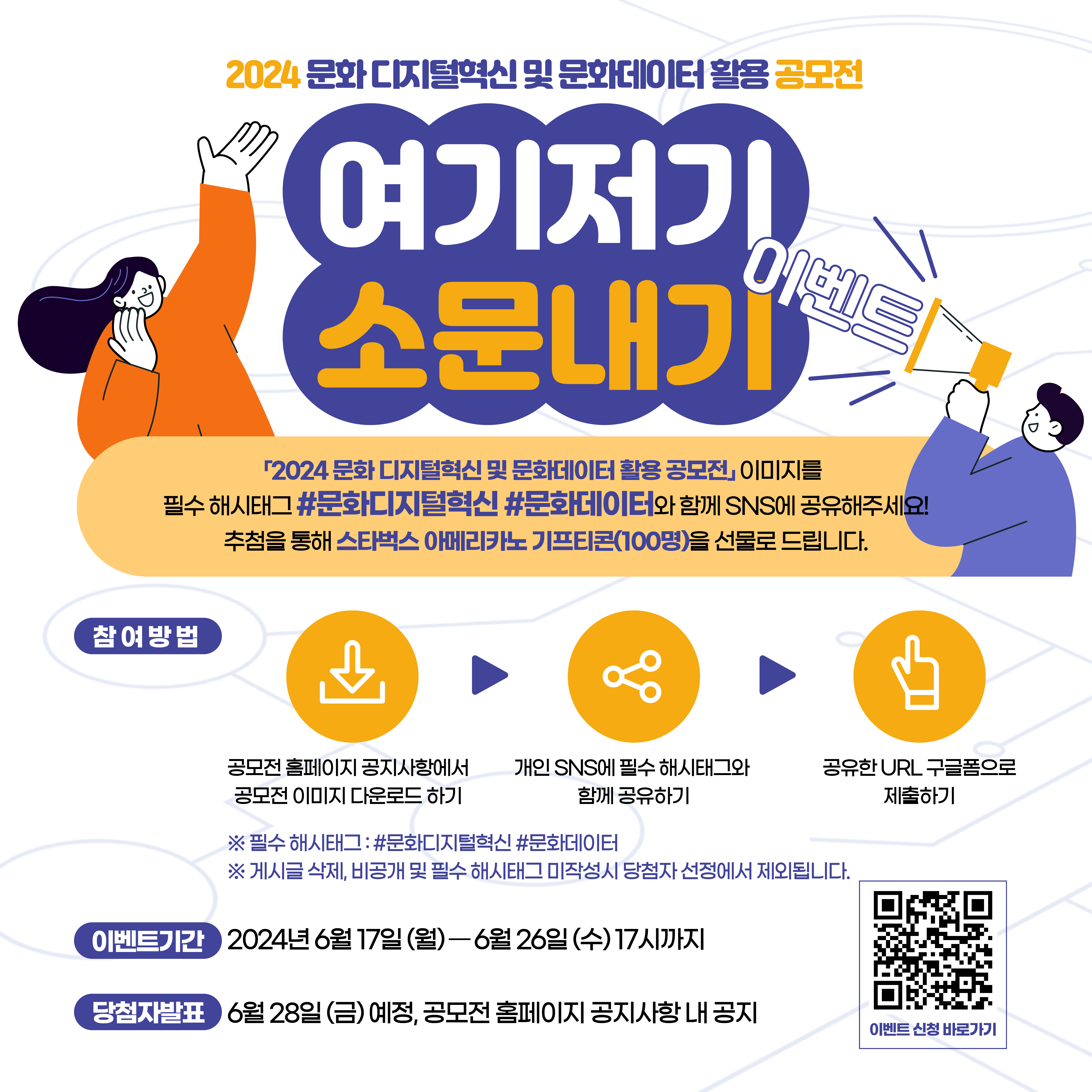 「2024 문화 디지털혁신 및 문화데이터 활용 공모전」 여기저기 소문내기 EVENT!(~6.26 17:00까지)