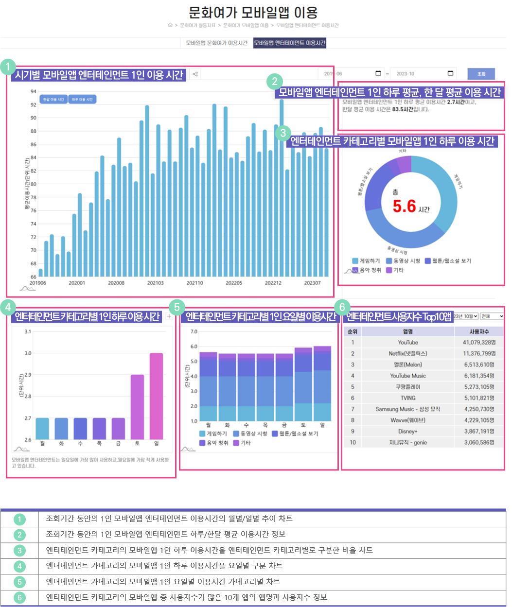 - 엔터테인먼트 카테고리별 모바일 앱 1인 하루 이용시간