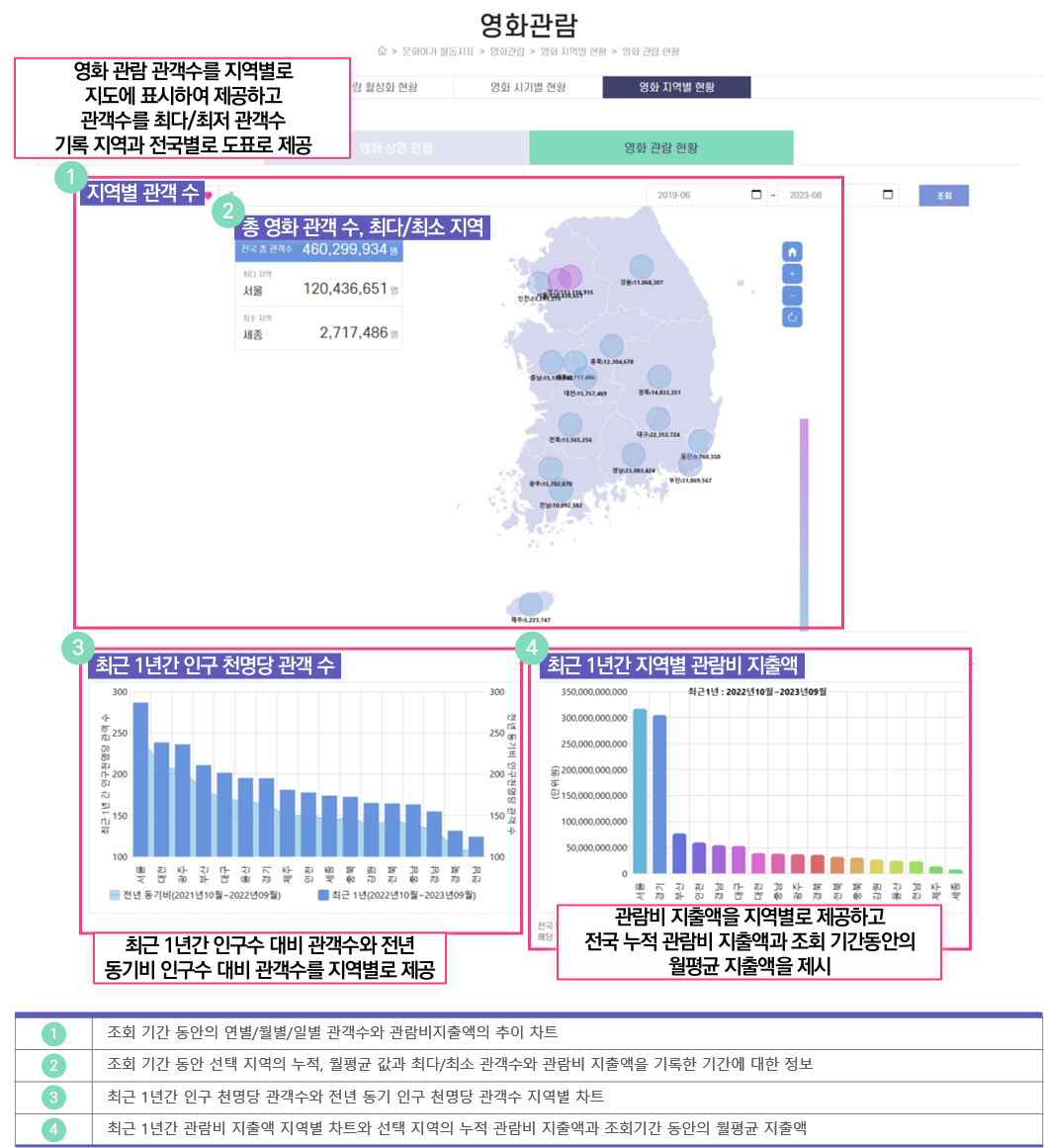 [(최근 1년 관객수 합산 x 1000) ÷ 최근 1년 간 월별 인구수 합산]로 산출합니다.