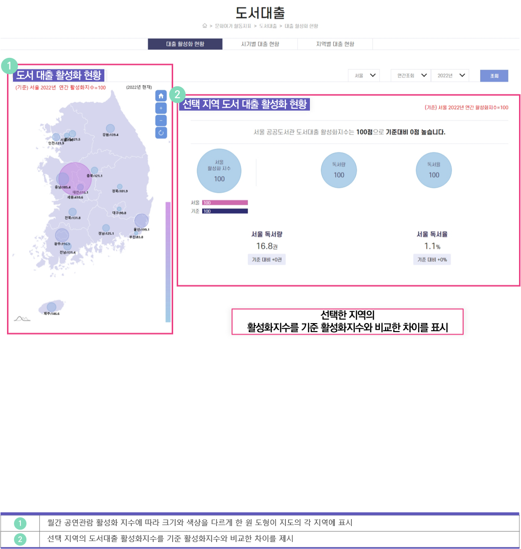 - 활성 지수는 독서량 및 독서율 2개 지표값을 평균하여 산출합니다.