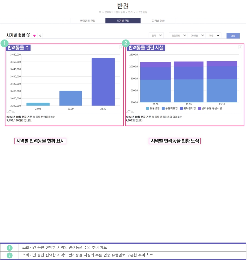 조회 기간의 등록 반려동물 수를 보여줍니다.
